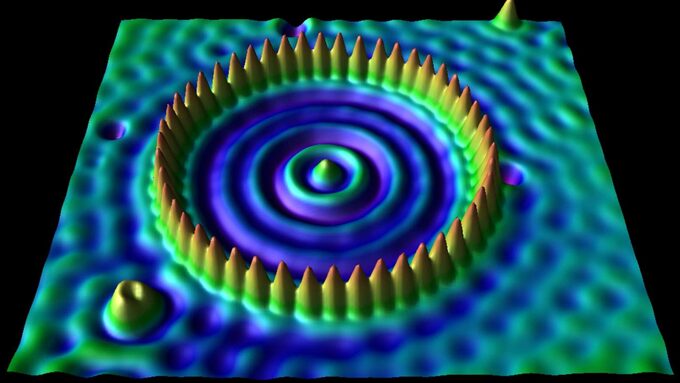 M. Bloch a ensuite évoqué le microscope à effet tunnel basé sur la possibilité surprenante qu’ont les objets quantiques de pouvoir franchir une barrière de potentiel même si leur énergie est inférieure à ce potentiel. Ce dernier fut inventé en 1981 par des chercheurs d'IBM, Gerd Binnig et Heinrich Rohrer, qui reçurent le prix Nobel de physique en 1986 pour cette invention. Ce microscope permet d’obtenir des images montrant la morphologie des surfaces au niveau atomique.