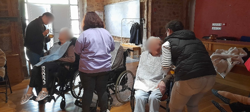 A la suite de l’activité une collation a été servie aux résidents et aux enfants de l’école venus profiter du spectacle. L’occasion pour les élèves de terminales d’aider les résidents à s’alimenter.
