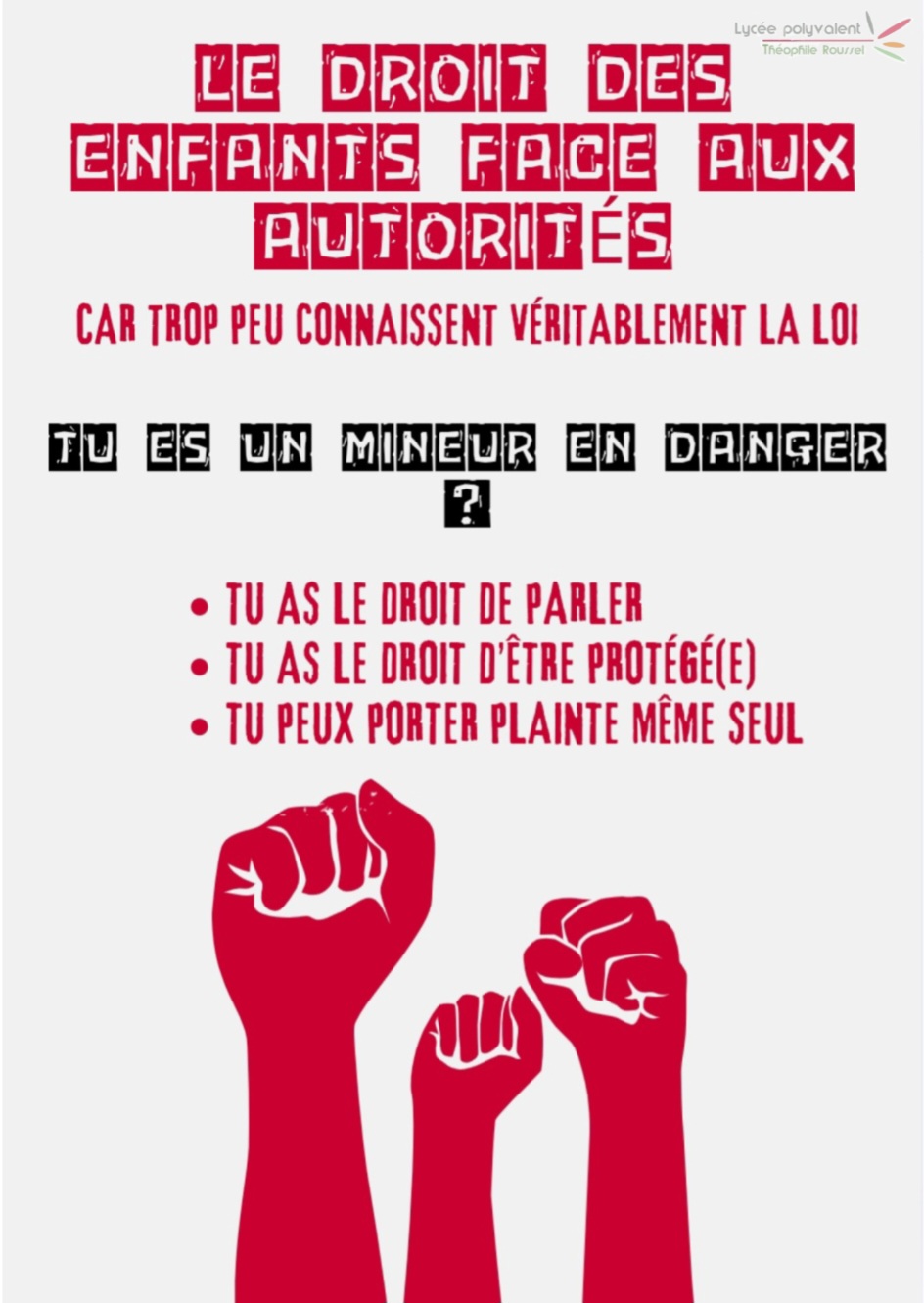 Dans le cadre d'un projet d'EMC (Enseignement Moral et Civique), une élève souhaite partager son travail sur le thème des droits des enfants :
