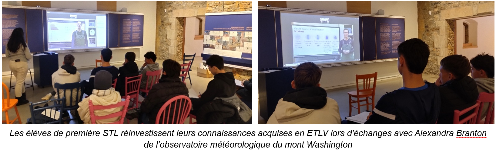 Rappelons notre collaboration l’an passé avec le Laboratoire de météorologie physique de Clermont-Ferrand, la réalisation d’une mini-station météo et l’édition de quelques bulletins météo mensuels. Cette année, en projet, les élèves de la nouvelle promotion 1STL auront à développer cette mini-station avec des améliorations technologiques sur la mesure de précipitations et travailleront sur l’implantation d’un anémomètre. En ETLV, ils présenteront sous forme de capsules vidéo leurs bulletins météorologiques.