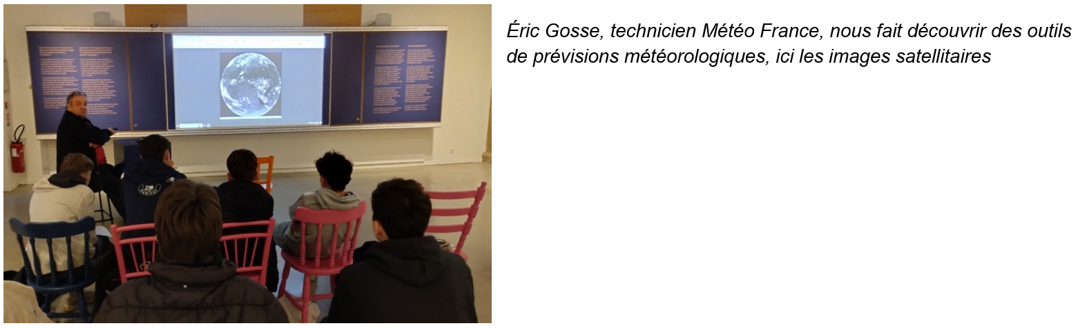Cette journée de partage dédiée à la météorologie et au climat fut d’une grande richesse et très stimulante au regard des objectifs que la classe de première STL s’est fixés cette année. Nous remercions infiniment tous nos intervenants, mesdames Marion Angelini et Alexandra Branton, monsieur Eric Gosse pour l’attention portée à nos élèves scientifiques et le partage de leurs connaissances. Nous remercions Laurent Bonnard, directeur du Climatographe, de nous avoir accueillis dans de telles conditions. Nous remercions enfin madame Lasternas, proviseure du lycée Théophile Roussel et monsieur Jean Luc Fosseries, directeur délégué aux formations professionnelles et technologiques, d’avoir validé cette sortie pédagogique.