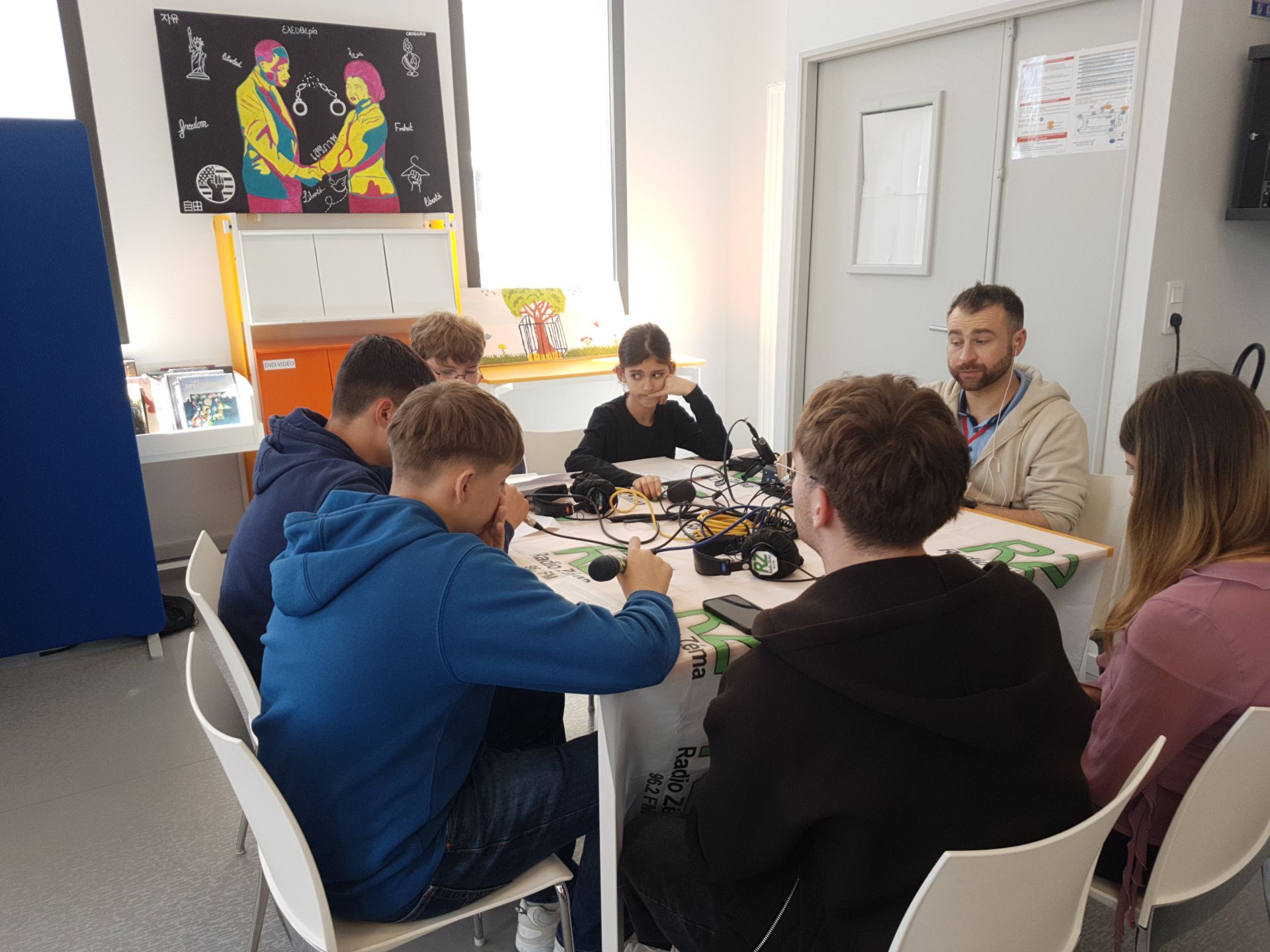 En début d'après midi, les groupes se succédés au micro de Radio Zema, notre radio partenaire. Le matériel et l’expertise de Jonathan, l'animateur de la radio, ont permis aux élèves de s’immerger pleinement dans l’univers de la radio professionnelle. Pendant l'enregistrement, les élèves des groupes qui n'étaient pas au micro ont été invités par M.Brager-Rouvière, professeur documentaliste a relever de petits défis médias : affiche, interview etc...